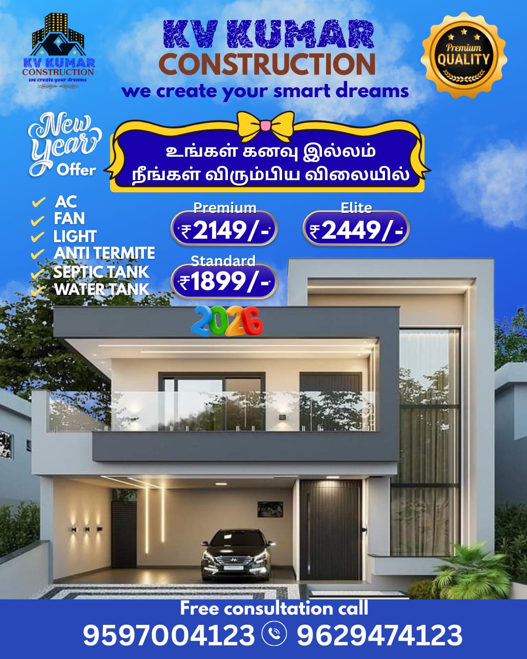 KV Kumar Construction provides reliable residential and commercial construction services with a strong focus on quality, modern design, and long-lasting structures. From planning and design to execution, we transform your vision into a safe, stylish, and durable space.